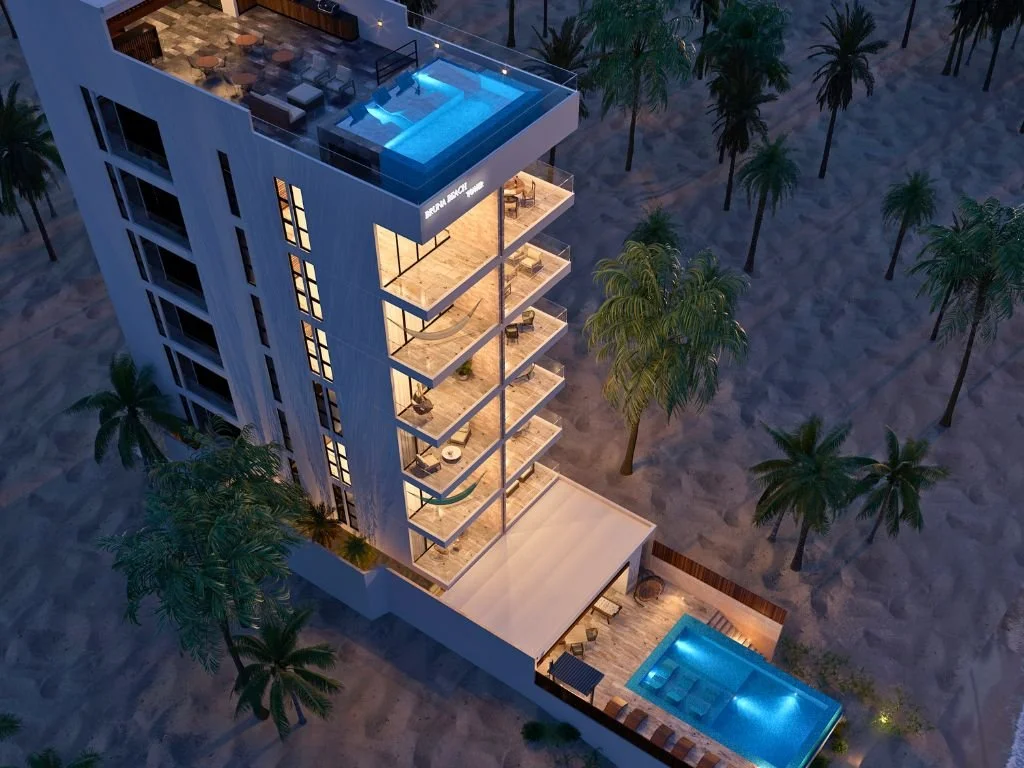 Bruna Beach Tower es un desarrollo frente al mar en la playa de Chelem con solo 9 departamentos, uno por piso, lo que brinda privacidad y exclusividad. Cada unidad de 185 m² cuenta con 4 recámaras, acabados premium y vistas panorámicas al océano. Con acceso privado a la playa, alberca infinity, terraza y vigilancia 24/7, es una oportunidad única para vivir o invertir en una propiedad con alta plusvalía en la costa yucateca.